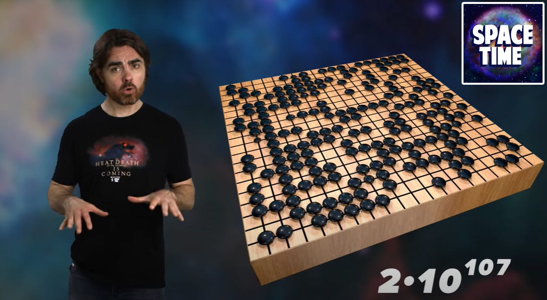 I want to learn more about this. It is so crucial. I do not sit with a firm understanding if other parts of the universe are not subject to the second law of thermodynamics and why that would be the case. The book does not deliver a satisfactory answer. So I’ve now resorted to other sources, most notably the amazing YouTube channel PBS SpaceTime to learn more about this, to me, surprisingly crucial concept of entropy. From the video below I’ve already learned that my school teachings of entropy as “disorder” is an unfortunately wide-spread misunderstanding. Also in praise of the SpaceTime video, the entropy metaphor with a Go board seems to me more instructive than Rovelli’s deck of cards.