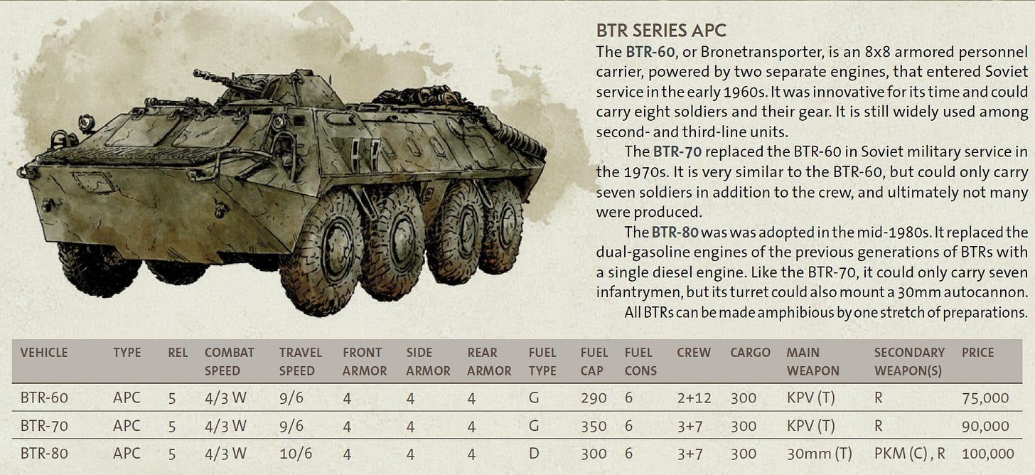 Even as Doc did some minor bandaging, however, our joy of reunion was shortlived. All too late, we heard the unmistakable sound of a BTR-70 rolling over the bridge near us. We all dropped down and lay as still as possible in among all the riverbank foilage. We were out of luck, clearly. The APC swung about and pointed its turret at us even as half a dozen Soviet troops dismounted from the vehicle and approached our little group with much yelling and many rifle barrels pointed straight at us.