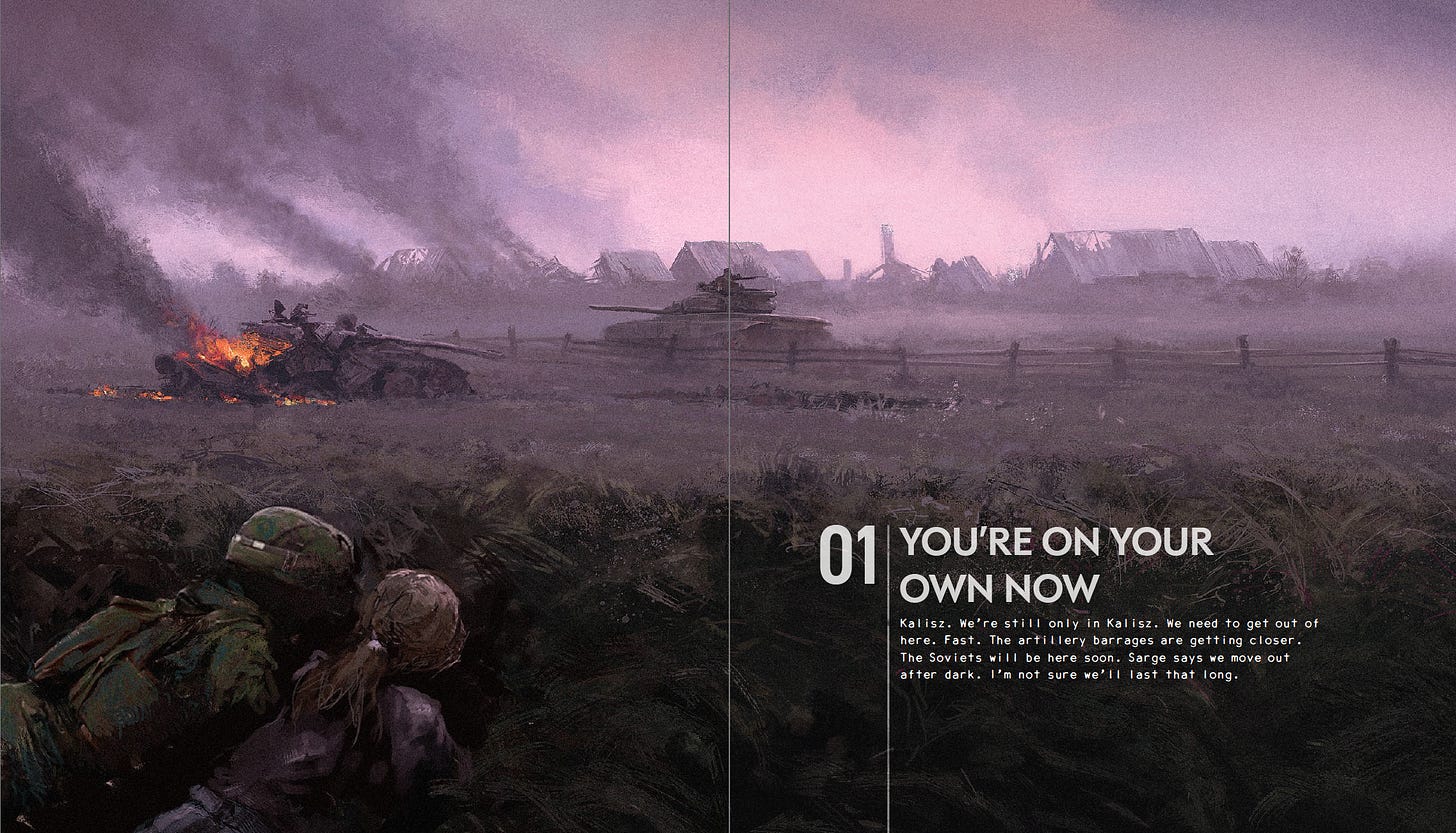 The others are Manny “Lobo” Rodriguez, a grizzled and battle-hardened U.S. Army grenadier and Maciek “Doc” Lobotka, a Polish medical student drafted into the Polish army.